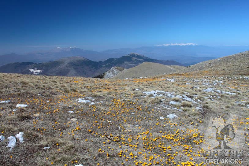 | Поляна осеяна с жълти минзухари |