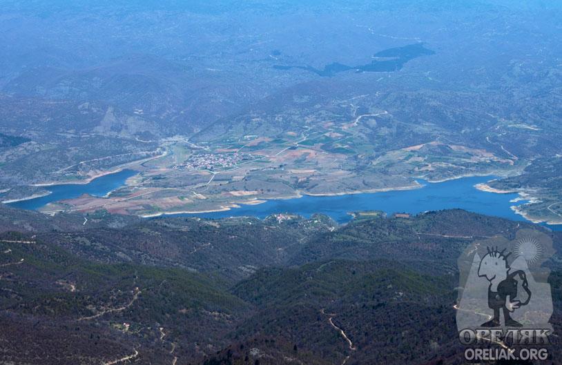 | Част от язовир Тисаврос. Виждат се селата Борово и Странен. |