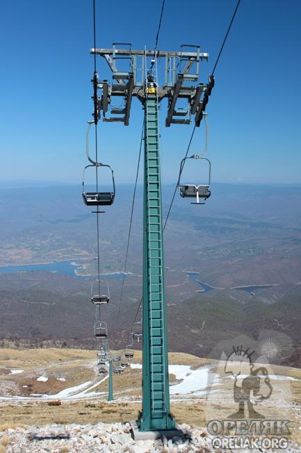 | Един от седалковите лифтове на ски центъра. Снимката е правена на метри под връхната кота на в. Клиседжик. |