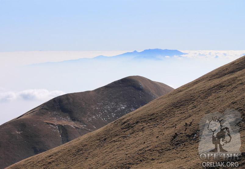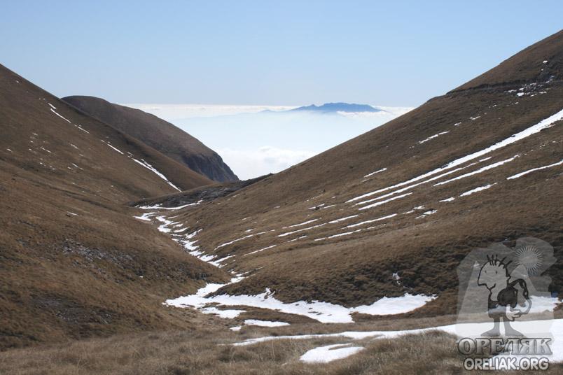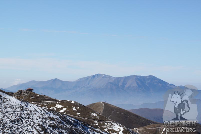 | Поглед към Алиботуш. На преден план склоновете на Пророк Илия, Карталка и Клиседжик |