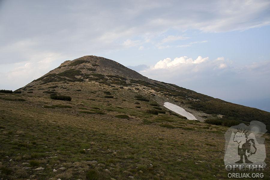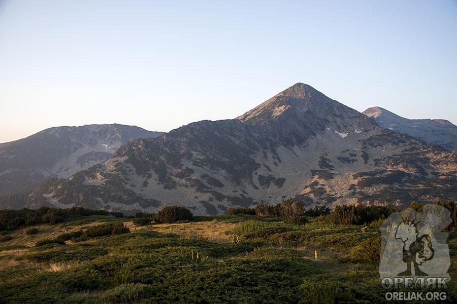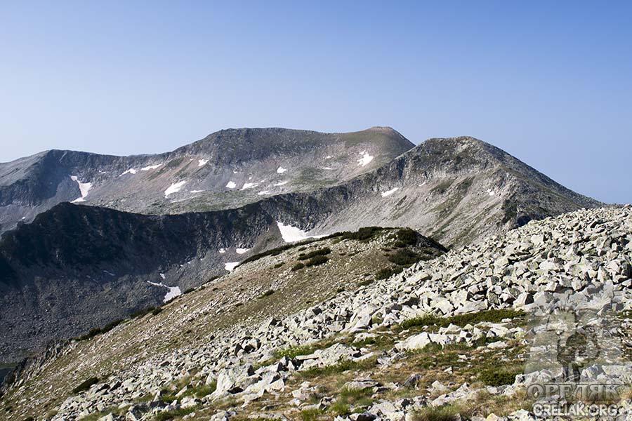 | По изгрев слънце вече сме на път. По прогноза около 13:30 ще завали. Дотогава трябва да се приберем в хижата. На преден, в центъра на снимката, в. Джангал - нашата главна цел за днес. |