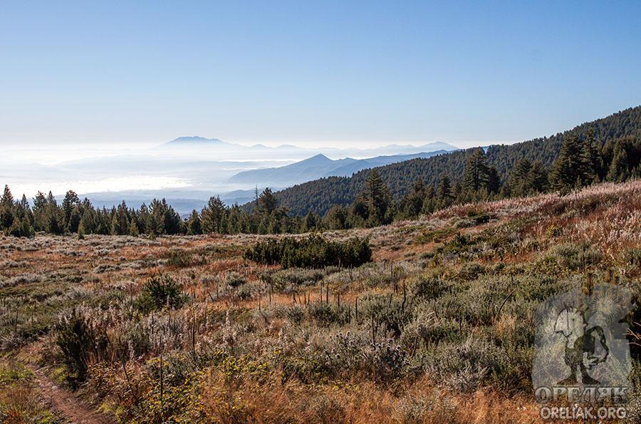 | Поглед от Чало към Лясковския връх (Св. Дух) и планината Боздаг |