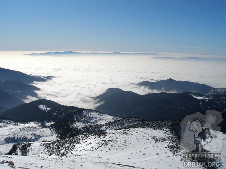 Облачно море в Санданско-Петричката котловина. На преден план долу Атмегдан.