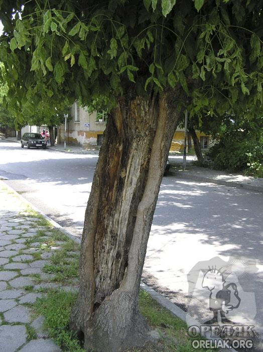 Ами, това дърво не е ли чудесно поле за научно-изследователските цели на някоя паралелка биология в училище. Може и някой ентомолог да се позаинтересува от него. В тази сърцевина какви ли неизвестни за науката видове насекоми може да са се завъдили!? Преди да се почне санитарното разчистване някой дали си е задал въпроса, колко големи рани може да понесе дървото от дадения вид. Видно е, че на някои видове тъканта изграждаща сърцевината е неустойчива на влагата. Тя прониква през раната в нея внасяйки куп организми, които намират благоприятна за тях, но не и за дървото среда за развитие. При това положение идеята да се водят ученици в часа по биология на това дърво примерно и да им се поясни как е дошло на този хал не е никак лоша. Тук трябва дебело да се подчертае, че у хората масово е насадена нагласата, че това е нещо съвсем нормално и едва ли не дърветата си загиват от старост, а "санитарната сеч" с нищо не "допринася" за това. Поглеждат и казват: Ами старо дърво, време си му е и толкоз! |